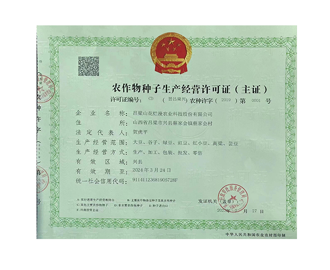 呂梁山花爛漫農(nóng)業(yè)科技股份有限公司是山西省農(nóng)業(yè)產(chǎn)業(yè)化重點(diǎn)龍頭企業(yè),公司成立于2008年,法人代表賀虎平,注冊資本1000 萬元,現(xiàn)有員工 30 人。公司位于興縣蔡家會鎮(zhèn)蔡家會村建有占地面積1萬多平方米生產(chǎn)區(qū)和辦公區(qū),年總加工雜糧能力達(dá)到4萬噸。擁有一套日精加工50噸谷子成套設(shè)備生產(chǎn)流水線;擁有一套日精加工30噸豆面、蕎面設(shè)備流水生產(chǎn)線;擁有一套日精加工50噸紅小豆、豇豆、綠豆、腎型黃豆、紅蕓豆設(shè)備流水生產(chǎn)線,2020年引進(jìn)省農(nóng)科院農(nóng)產(chǎn)品加工研究所谷子精深加工技術(shù),目前設(shè)計年產(chǎn)300噸的小米油加工一條龍生產(chǎn)線已經(jīng)安裝調(diào)試完畢,產(chǎn)品經(jīng)化驗達(dá)到國家一級油標(biāo)準(zhǔn),并獲得兩項專利證書。主要產(chǎn)品有“山花爛漫”牌有機(jī)小米、綠色小米各種精美包裝系列;蔡家會村豇豆面、豌豆面等雜糧面、手搟豆面系列、以及有機(jī)精品雜糧系列。擁有“山花爛漫”山西省著名商標(biāo)。公司采用線下和線上銷售相結(jié)合的營銷模式。